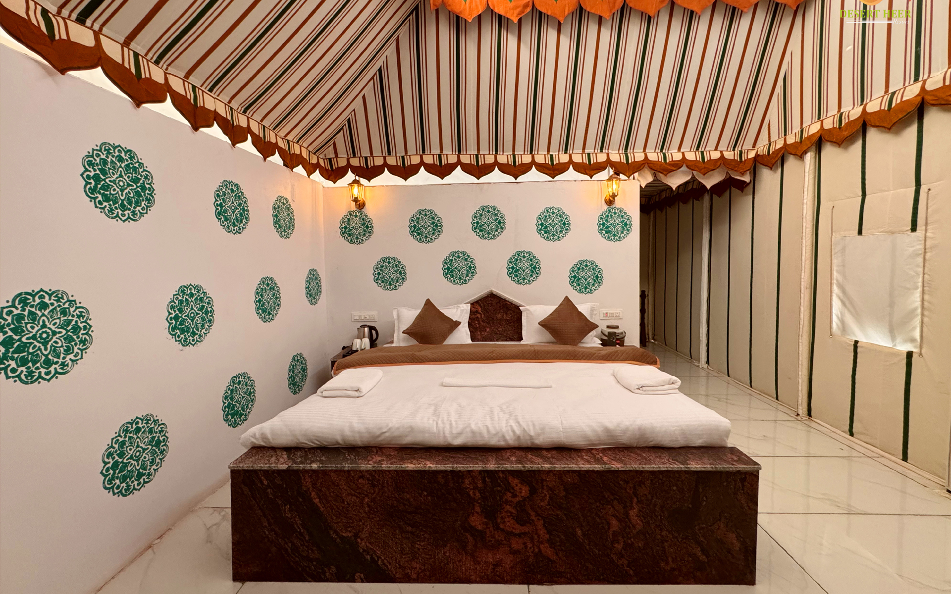 +91 7727881792Desert Heer Resort is like an oasis amid the silky sands of the Thar Desert. Spread across 3 acres of land, this Luxury Desert camp has delightfully styled 22 tents all of which will take you back into the era of Jaisalmer Maharajas lifestyle! One thing which you can never forget in your life is your stay at Best Luxury Desert camp in Jaisalmer, Reconnoiter the beauty of silky dunes, mesmerizing evenings filled with colorful Rajasthani folk dancers.